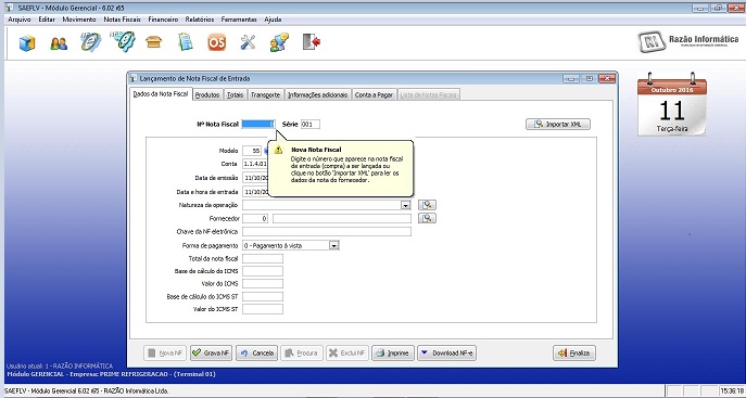 Lançamento de nota fiscal de compra automaticamente pelo arquivo XML recebido do fornecedor.