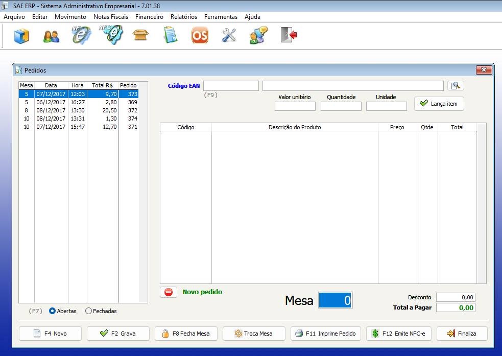 Veja abaixo algumas telas do Sistema ERP SAE Gerencial